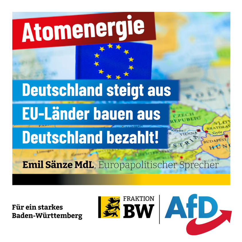 , europapolitischer Sprecher der AfD-Fraktion stellt fest: "Das sind also die Kosten des AtomAUSstiegs Deutschlands. Zugleich arbeitet die EU aktuell am AtomEINstieg. Und Deutschland ist mit riesigem Abstand größter Nettozahler in die EU. Dabei deklariert die EU aktuell Kernenergie (und Gaskraftwerke, aber auch das ist ein anderes Thema) als nachhaltige Formen der Energieerzeugung um. Frau Merkel hat hierfür auf dem letzten EU-Gipfel im Oktober Zustimmung signalisiert - also die gleiche Frau Merkel, die 2011 nicht schnell genug den AtomAUSstieg verkünden konnte. Die EU-Kommission wird in Kürze ein entsprechendes Gesetz vorlegen. „Nachhaltig“ wird bedeuten, dass diese Formen der Energieerzeugung finanziell bevorzugt und gefördert werden."